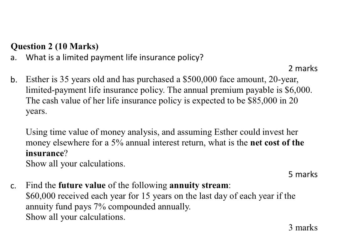 Solved Question 2 10 Marks A What Is A Limited Payment Chegg Com